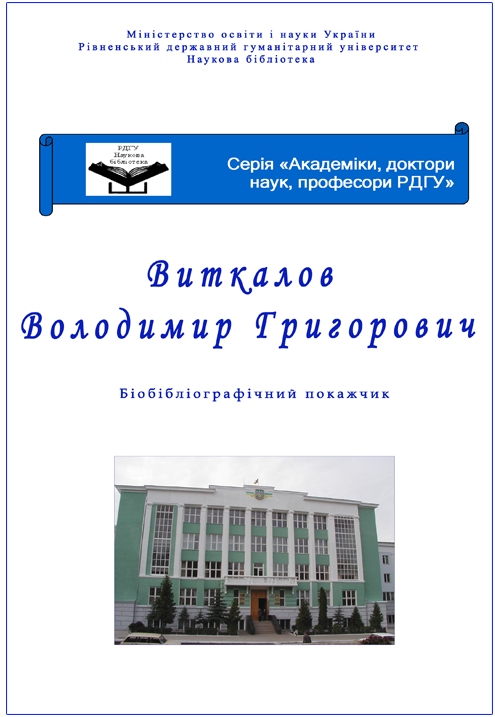 Додаткова інформація (бібліографічний опис): | Виткалов Володимир Григорович : біобібліогр. покажч. / М-во освіти і науки України, Рівнен. держ. гуманіт. ун-т, Наук. б-ка ; уклад.: С.Н. Грипич, Н.В. Марчук. –Рівне: РДГУ, 2014. – 89 с. – (Академіки, доктори наук, професори РДГУ). |