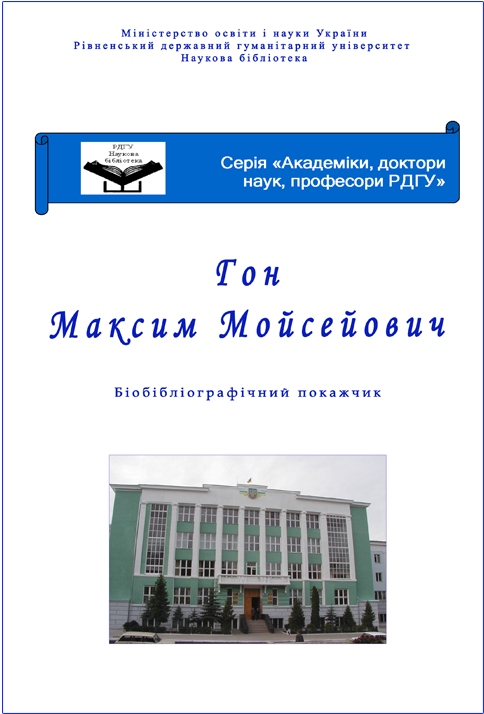 Додаткова інформація (бібліографічний опис): | Гон Максим Мойсейович : біобібліогр. покажч. / М-во освіти і науки України, Рівнен. держ гуманіт. ун-т, Наук. б-ка ; уклад.: С.Н. Грипич, Л.В. Ковальчук. Н.В. Ковальчук. – Рівне : РДГУ, 2013. – 96 с. – (Академіки, доктори наук, професори РДГУ). |