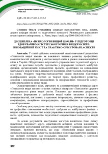 Созонюк О.С. (2026) ДИСЦИПЛІНА «ПСИХОЛОГІЯ ВИЩОЇ ШКОЛИ» У ПІДГОТОВЦІ ЗДОБУВАЧІВ МАГІСТЕРСЬКОГО РІВНЯ ВИЩОЇ ОСВІТИ: ІННОВАЦІЙНИЙ ЗМІСТ ТА ПРАКТИКО-ОРІЄНТОВАНІ АСПЕКТИ. Перспективи та інновації науки, 2026 (3): 61. с. 3892-3902. ISSN 2786-4952