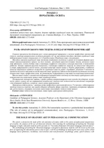 Стаття присвячена дослідженню ролі і місця ораторської вправності у системі професійних компетенційучителя, аналізові використання елементів риторики під час викладання методики навчання української мови здобувачів вищої освіти спеціальності А 4 «Середня освіта (Українська мова і література)».